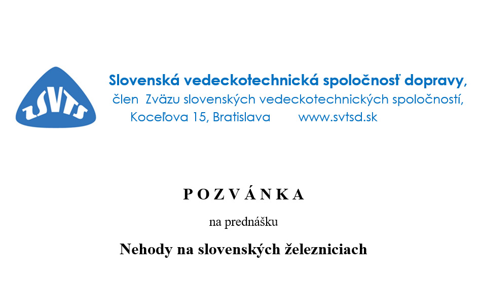 Srdečne Vás všetkých pozývame na prednášku Nehody na slovenských železniciach, ktorá sa uskutoční 25. marca 2026 (streda) v budove GR ŽSR, Klemensova 8, Bratislava – zasadačky číslo 2 – 3 na prízemí so začiatkom o 15:30 hodine.