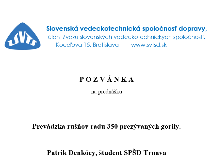 Srdečne Vás všetkých pozývame na prednášku Prevádzka rušňov radu 350 prezývaných gorily - Patrik Denkócy, študent SPŠD Trnava. Prednáška sa uskutoční 25. februára 2026 (streda) v budove GR ŽSR, Klemensova 8, Bratislava - zasadačky číslo 2 - 3 na prízemí, so začiatkom o 15:30 hod.